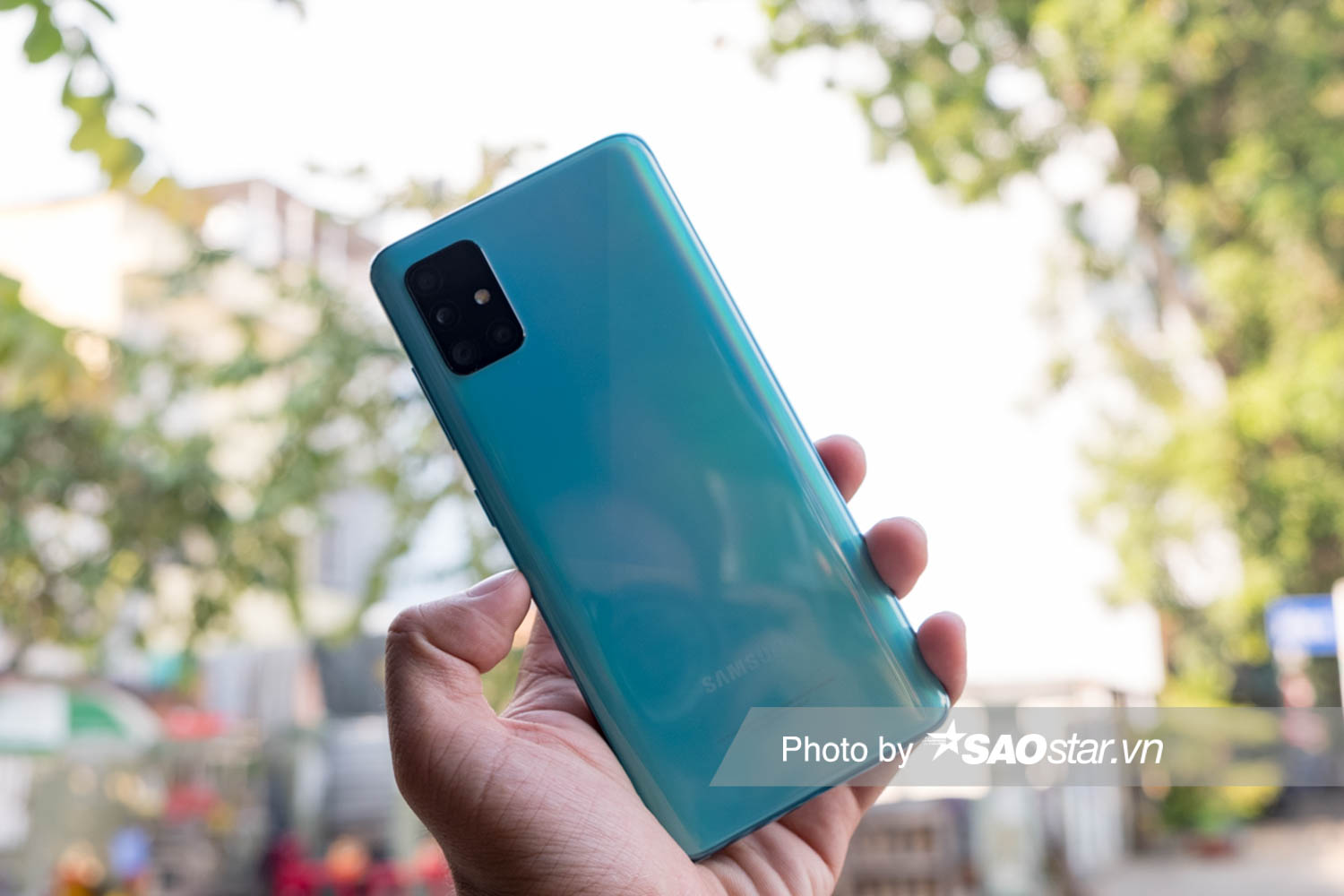 Galaxy A51 sở hữu thiết kế bắt mắt với mặt lưng được hoàn thiện dựa trên các họa tiết cắt kim cương. Phiên bản Xanh Crush Đa Sắc của Galaxy A51 có màu khá ngọt và trẻ trung.