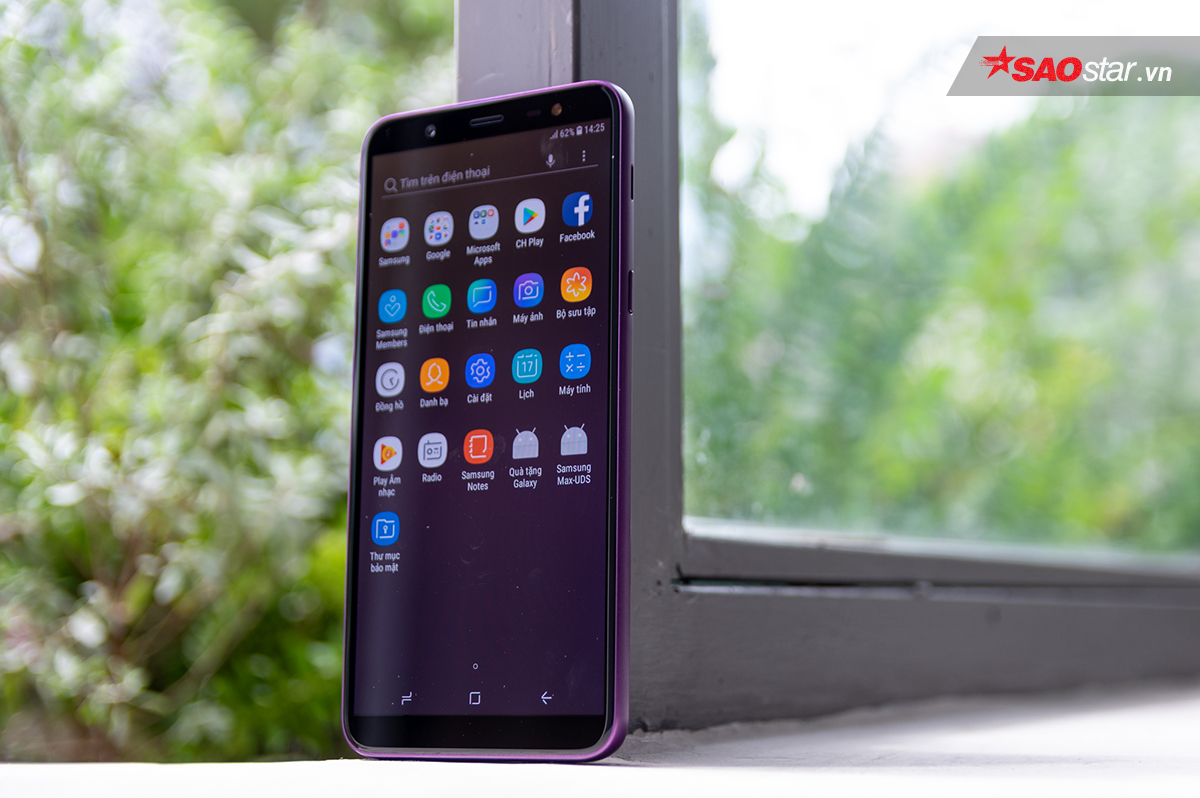Galaxy J8 sở hữu màn hình tràn viền, tấm nền Super AMOLED 6 inch, tỷ lệ 18,5:9, độ phân giải HD+ (720 x 1.480 pixel)