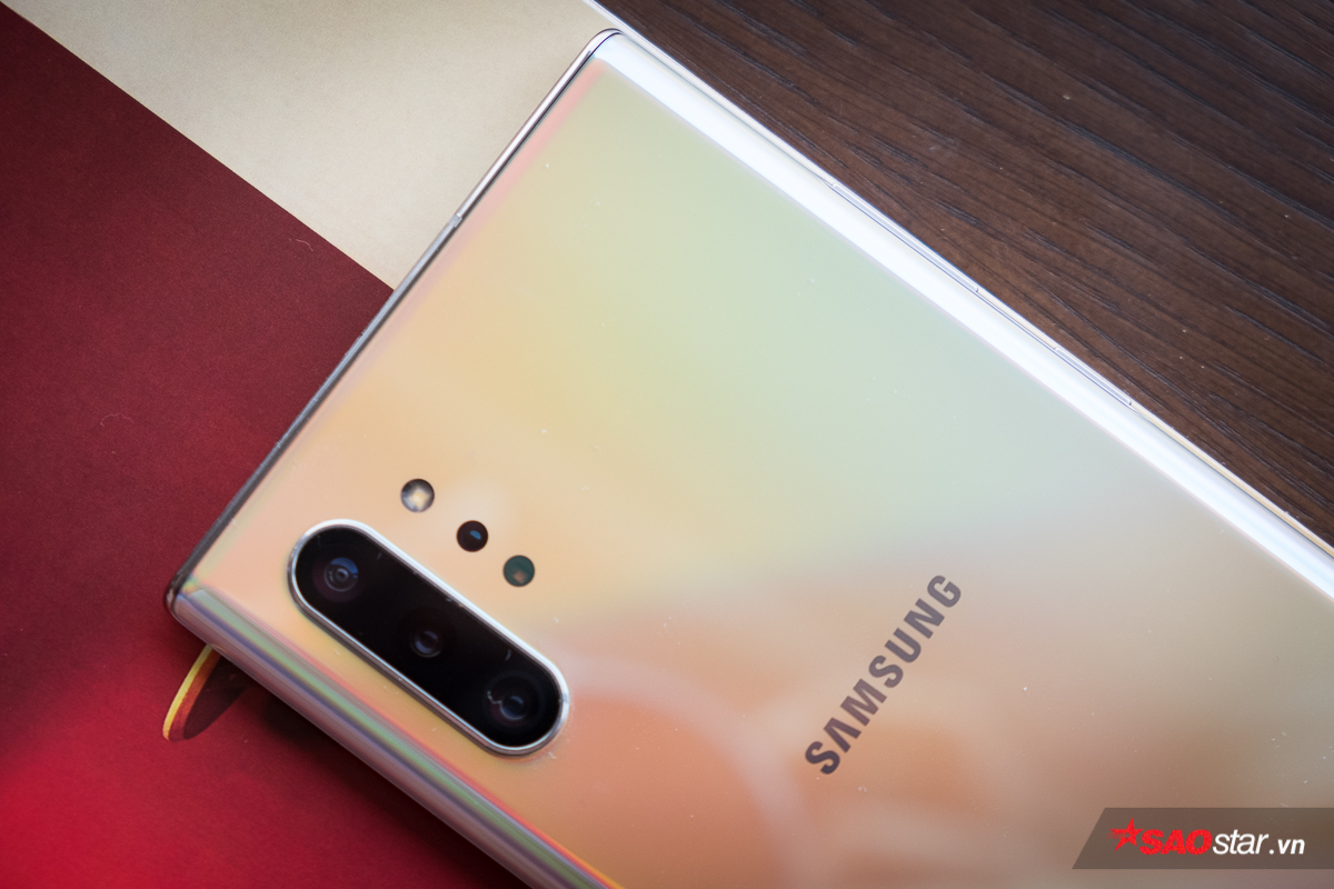 Samsung Galaxy Note10+ được trang bị bốn camera ở mặt sau, bao gồm một camera góc rộng 12 MP khẩu độ kép f/1.5-2.4, một camera telephoto hỗ trợ zoom quang học 2x 12 MP, một camera góc siêu rộng 16 MP cùng với đó là một camera TOF 3D.