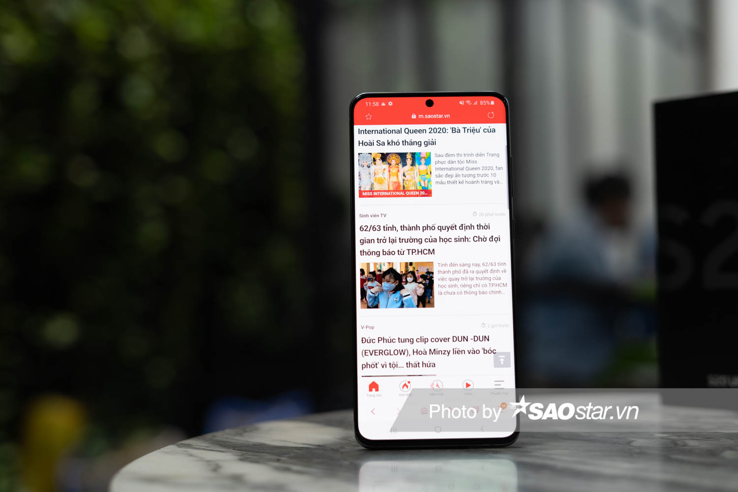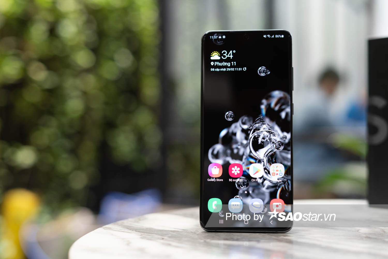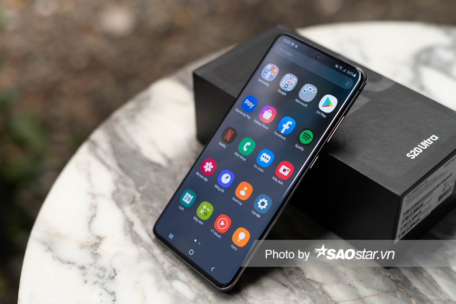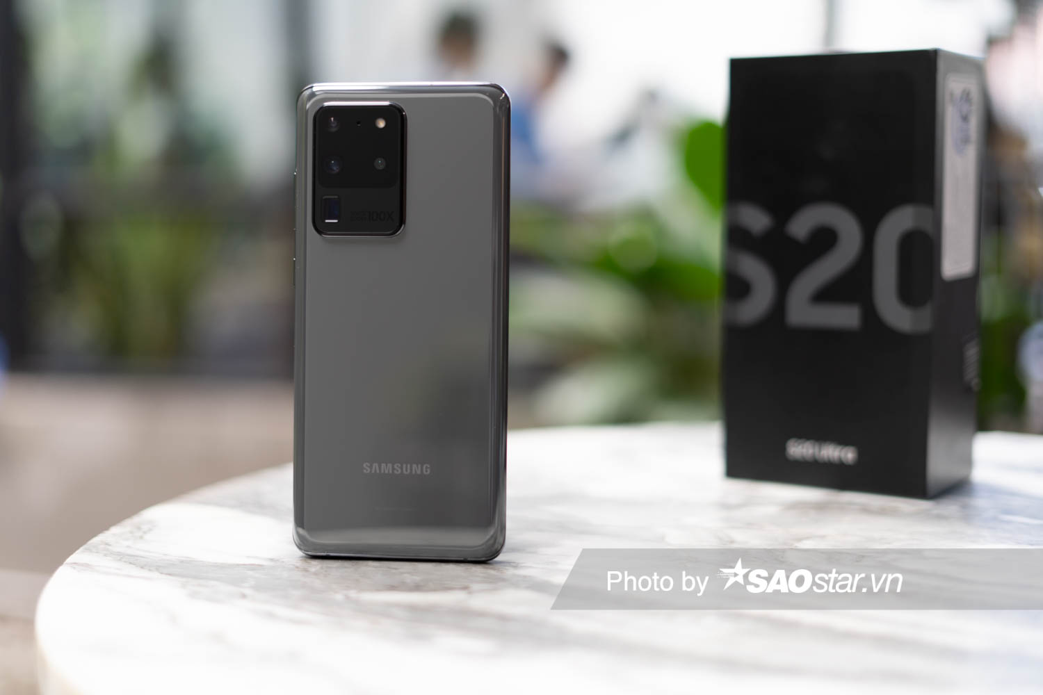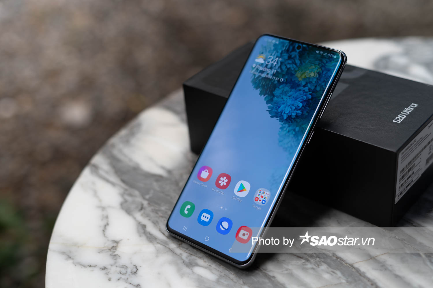 Về cấu hình, Galaxy S20 Ultra sở hữu vi xử lý Exynos 990 (7nm+) gồm 8 nhân, trong đó có 2 nhân Mongoose xung nhịp cao lên đến 2.73GHz, RAM dung lượng 12GB và bộ nhớ trong lên đến 128GB (UFS 3.0).