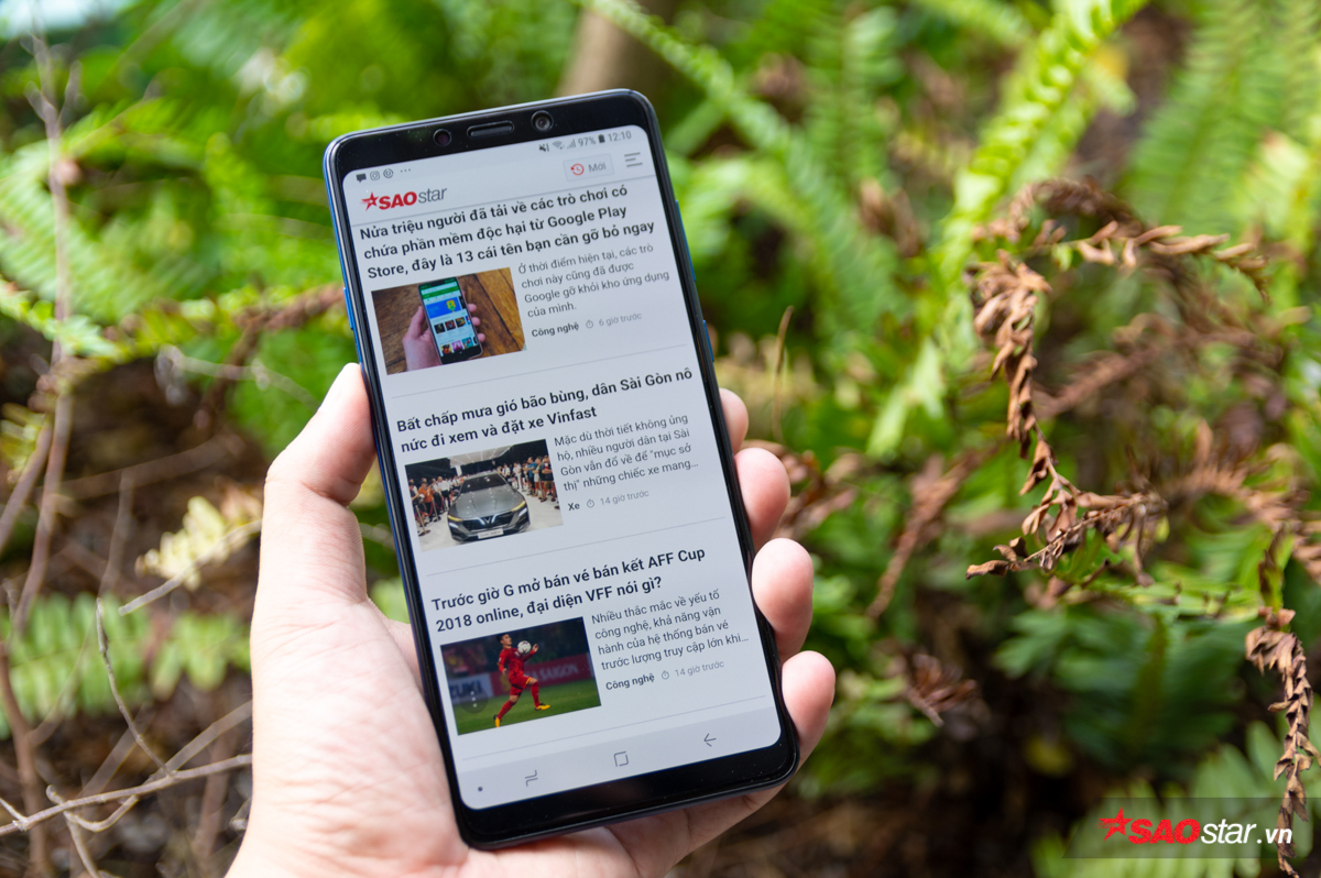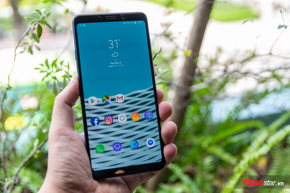 Sản phẩm trang bị màn hình có kích thước 6.3 inch, tấm nền SuperAMOLED FullHD+ với tỉ lệ 18:9 cho chất lượng hiển thị tốt ngay cả khi sử dụng ngoài trời nắng gắt.