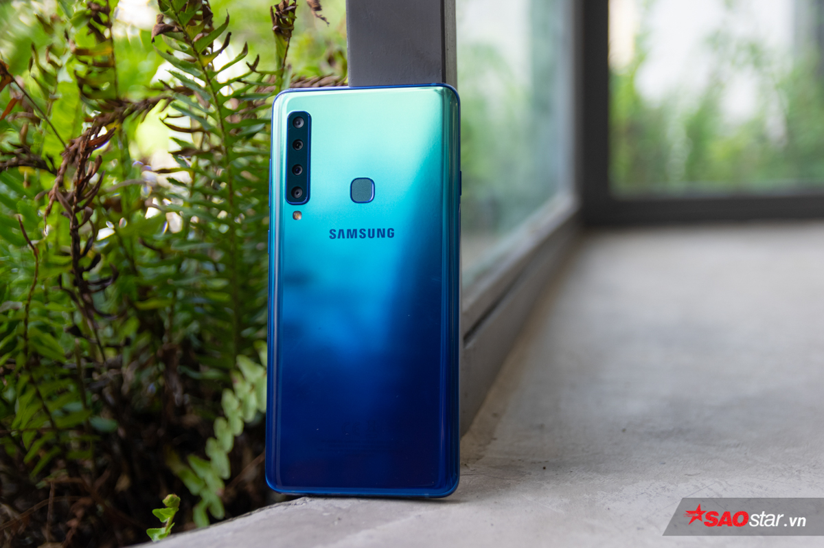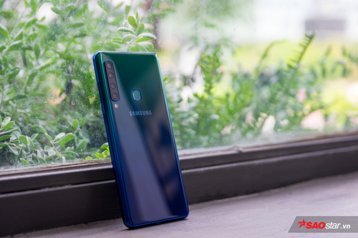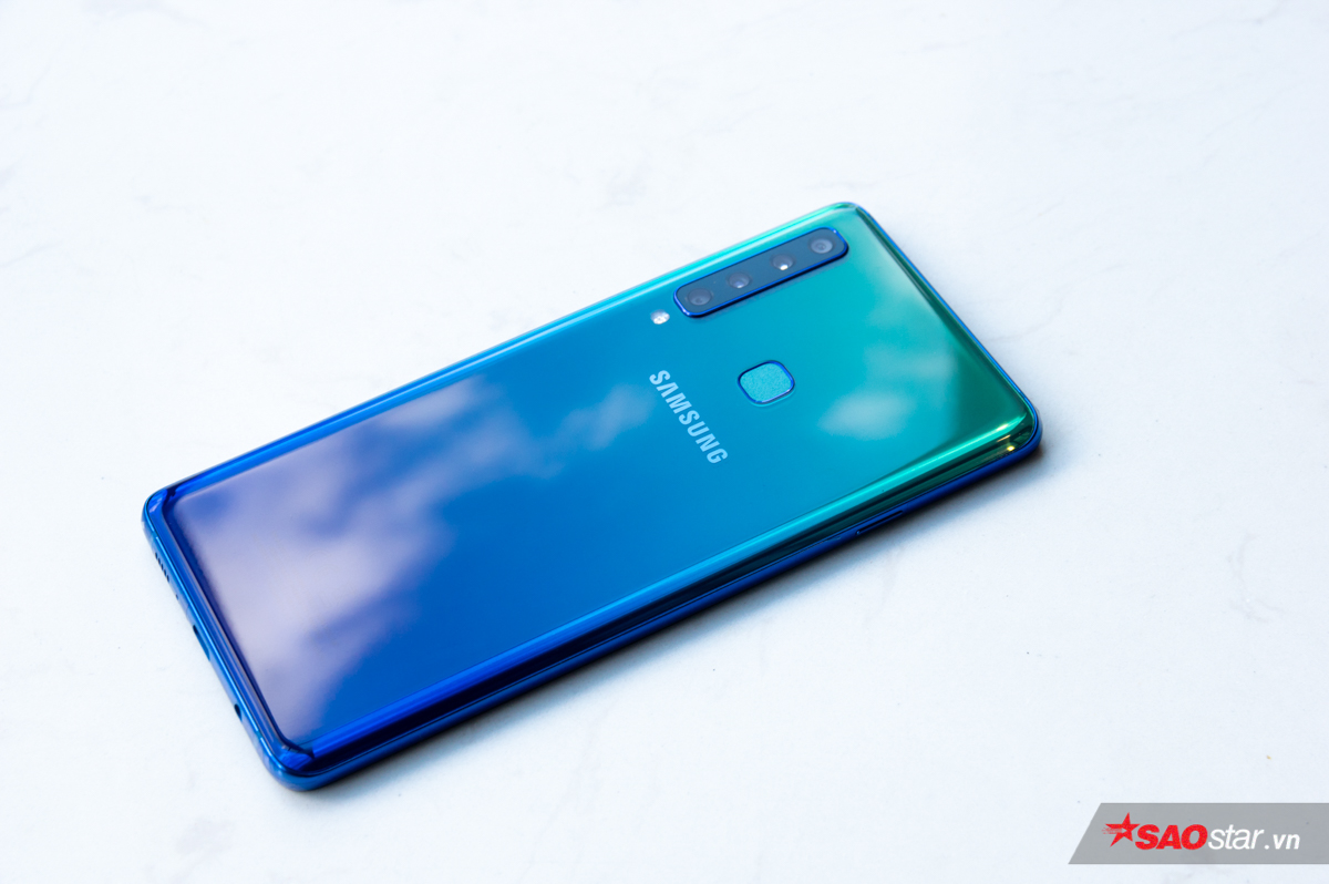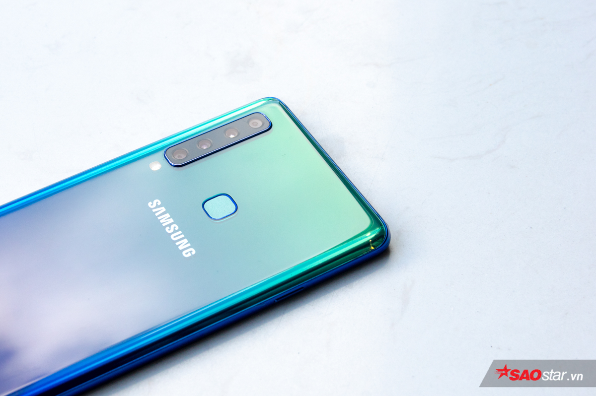 Điểm nhấn trên Galaxy A9 là cụm 4 camera sắp xếp từ trên xuống dưới, bao gồm một camera góc siêu rộng (8MP, f/2.4), camera zoom 2x (10MP, f/2.4), camera chính (24MP, f/1.7) và cảm biến chiều sâu (5MP, f/2.2), đi kèm một đèn flash LED, hỗ trợ khả năng quay video 4K/fullHD 30fps, Super SlowMotion HD 480fps và chống rung điện tử.