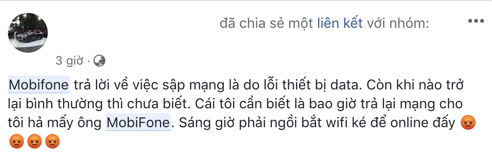Một người dùng bực tức khi vẫn chưa sử dụng được data của nhà mạng MobiFone.