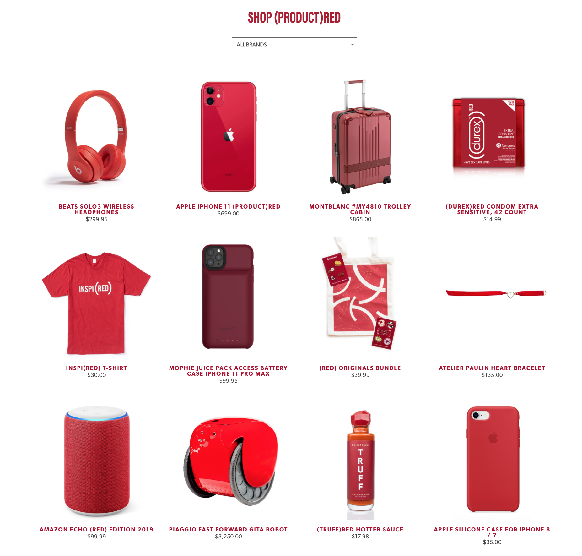 (PRODUCT)RED là dự án liên kết giữa (RED) và các công ty lớn như Apple, Nike hay Starbucks,… nhằm nâng cao nhận thức và gây quỹ hỗ trợ cuộc chiến chống HIV/AIDS tại châu Phi.