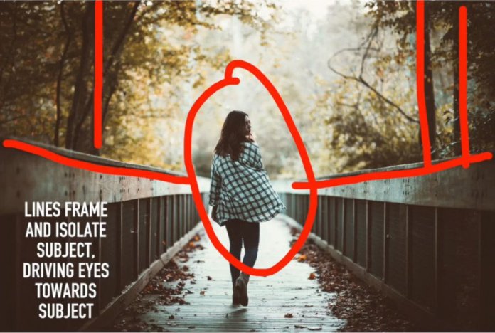 Lời khuyên của Ranft là chúng ta nên chọn phần hậu cảnh rộng hơn chủ thể, khi đó, chủ thể trong ảnh sẽ được làm nổi bật và tạo cảm giác cuốn hút cho người xem. Bức ảnh trên là một ví dụ về cách sử dụng các nét thẳng hướng về một điểm để thu hút người xem, nổi bật tâm là mẫu ảnh.