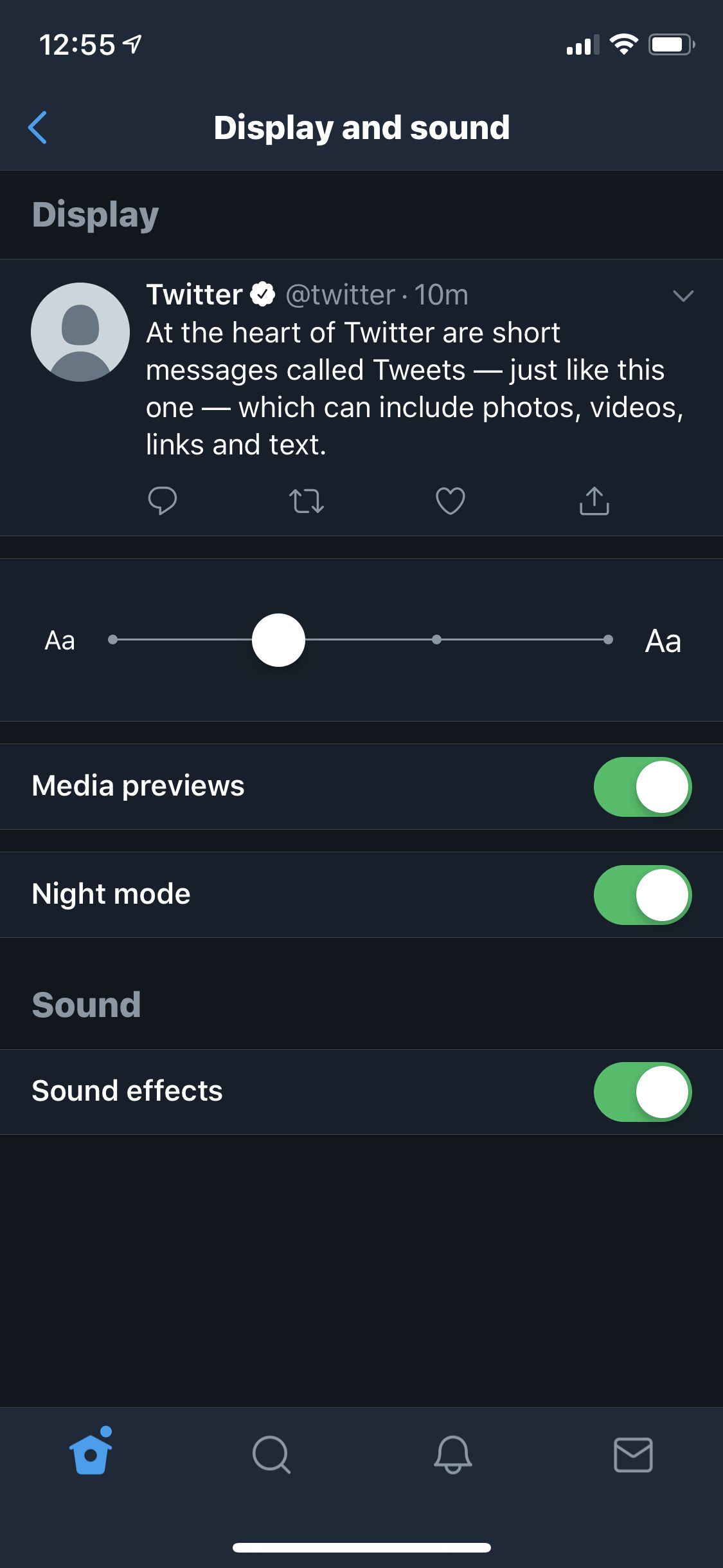Nếu bạn không muốn bị mỏi mắt khi sử dụng Twitter vào ban đêm, hãy kích hoạt chế độ ban đêm Night Mode của Twitter bằng cách thực hiện các thao tác sau: Mở ứng dụng Twitter trên thiết bị iOS > chọn tab Home ở góc dưới bên phải > tiếp theo chạm vào biểu tượng Profile > nhấn vào biểu tượng hình mặt trăng khuyết là xong.