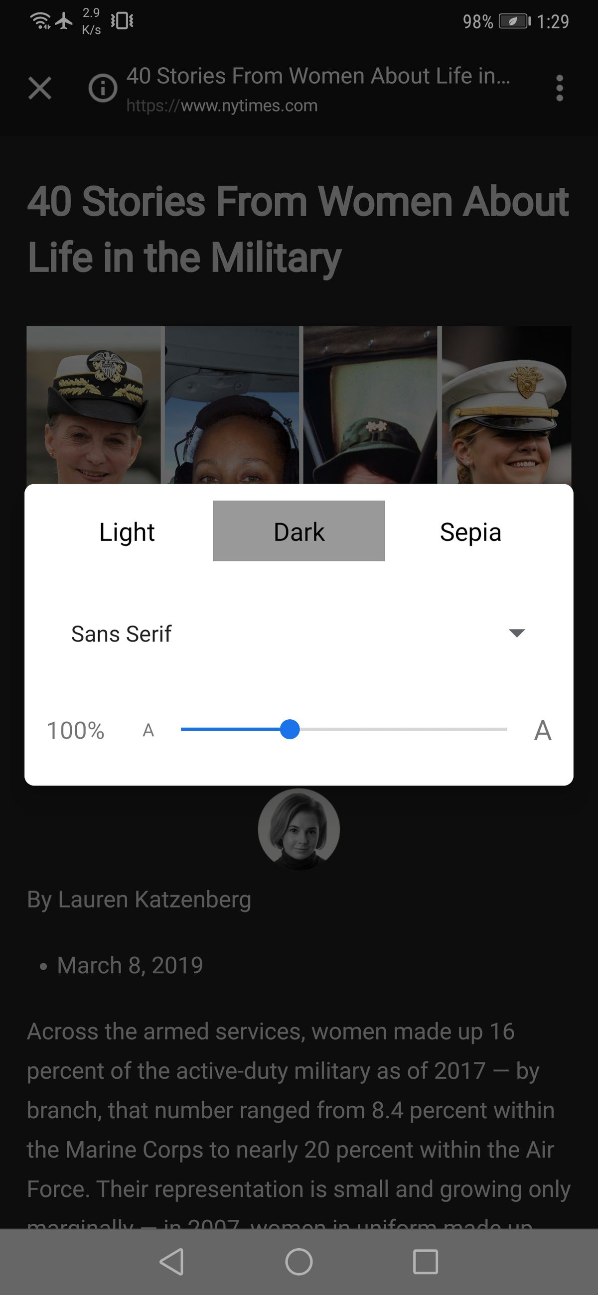 Mặc dù chưa cập nhật chính thức, nhưng bạn vẫn có thể trải nghiệm chế độ Dark Mode của Chrome bằng cách: Nhấn vào biểu tượng ba chấm ở góc trên bên phải màn hình > truy cập Cài đặt - Trợ năng (Settings - Accessibility) và bật chế độ xem Đơn giản hóa (Simplified view) cho các trang web. Sau đó, bạn sẽ có thể thay đổi giao diện của trang web thành Light, Dark hoặc Sepia bằng cách nhấn ba dấu chấm ở góc trên bên phải ứng dụng.