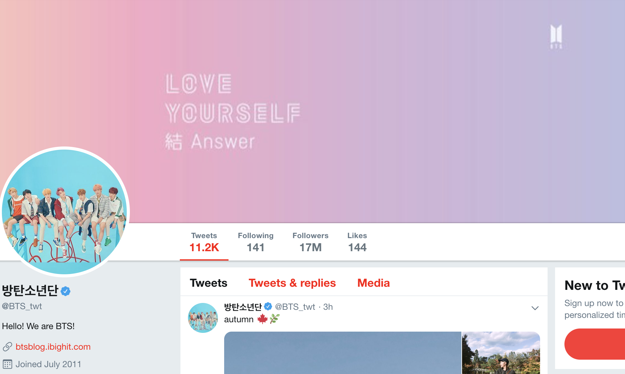 Thực tế, vào thời điểm mới gia nhập Twitter, tài khoản của nhóm chỉ đạt 11,2 triệu người theo dõi, thấp hơn rất nhiều so với lượng người theo dõi của Donald Trump ( 44,9 triệu người) hay của Justin Bieber (với 104 triệu người). Nhưng sự khôn khéo của chính các thành viên, BTS đã nâng tầm cho các bài viết của mình sánh ngang với những trang twitter đình đám như hiện nay. Điều này cũng chứng tỏ rằng, BTS đang đi theo hướng đúng đắn cho hành trình mang cái tên của mình vươn xa toàn cầu.