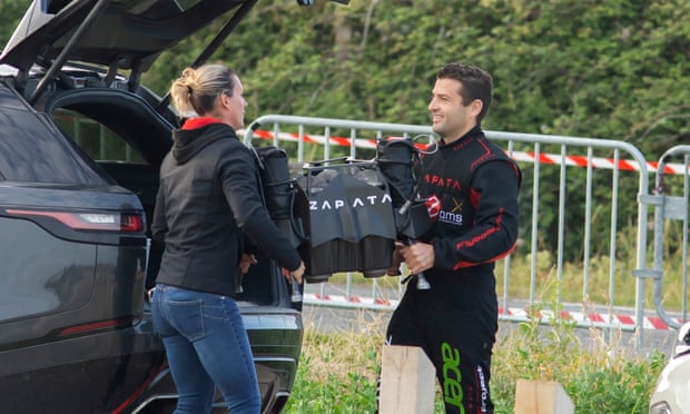 Franky Zapata dỡ thiết bị khỏi xe để chuẩn bị cho hành trình.