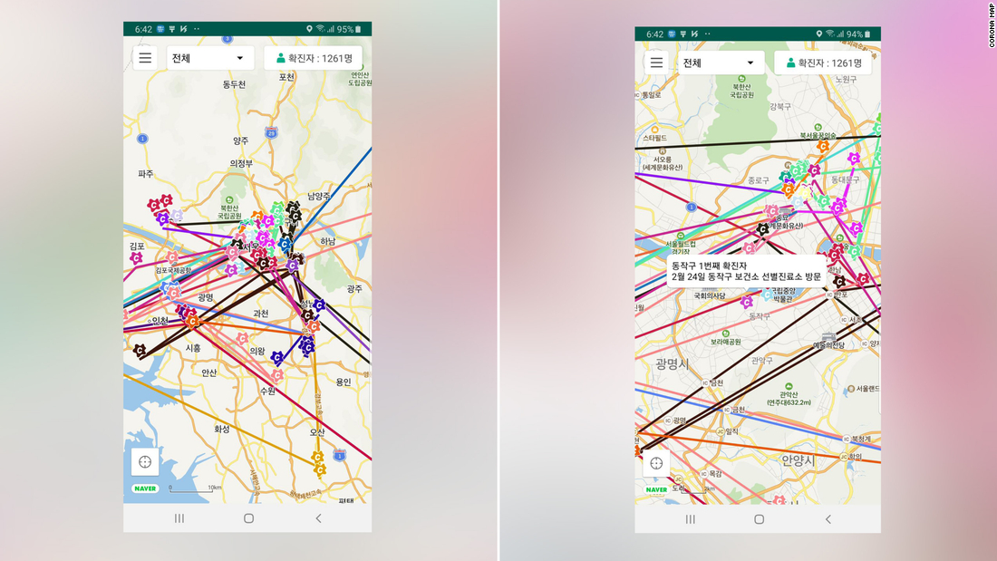 Từ đó, một ứng dụng cho điện thoại có tên “Corona 100m” đã ra đời để cảnh báo người dân Hàn Quốc khi họ bước đến những vùng mà người bệnh đã từng đi qua.