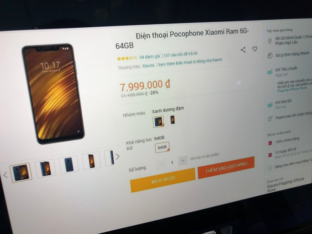 Chưa hết, một người dùng tinh ý còn phát hiện chiêu trò giảm giá ảo của một cửa hàng khi rao giá chiếc smartphone Pocophone F1 còn chỉ 8 triệu đồng cho phiên bản RAM 6 GB, giảm từ 11,1 triệu đồng khi áp dụng mức giảm 28%. Tuy nhiên trên thực tế, chiếc máy này khi bán ra chính hãng đã có mức giá 7,9 triệu đồng và được tặng kèm quà khuyến mãi.