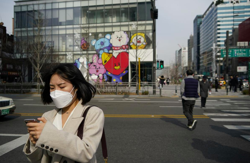 Một người Hàn Quốc đeo khẩu trang trên một con phố ở Seoul. (Ảnh: Reuters)