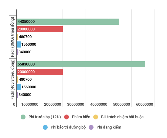 Chi phí “lăn bánh” của Fadil có thể là 436,33 triệu đồng và 543,51 triệu đồng lần lượt cho hay mức trợ giá và niêm yết.