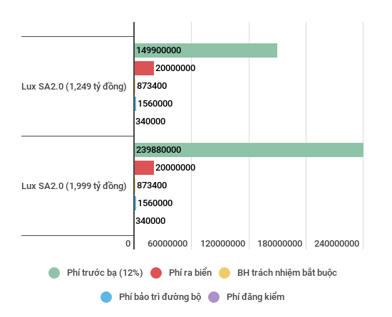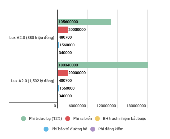 Con số này của Lux A2.0 là 1,008 tỷ đồng và 1,704 tỷ đồng.