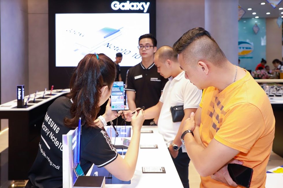 “Bạn thậm chí có thể dán màn hình điện thoại ngay tại đây,” Minh Tâm (24 tuổi, TP. HCM) chia sẻ về trải nghiệm của mình với cửa hàng trải nghiệm của Samsung. Cô tới đây cũng một người bạn của mình ngay trong ngày khai trương. Bạn của Minh Tâm, Tuấn Anh, muốn mua một chiếc Samsung Galaxy Note10 mà Samsung vừa ra mắt. Anh muốn tận tay trải nghiệm thiết bị này trước khi mua máy vì giá thành không rẻ. Bên cạnh đó, cửa hàng trải nghiệm cũng đang có chương trình khuyến mại cho khách hàng đặt trước thiết bị này.