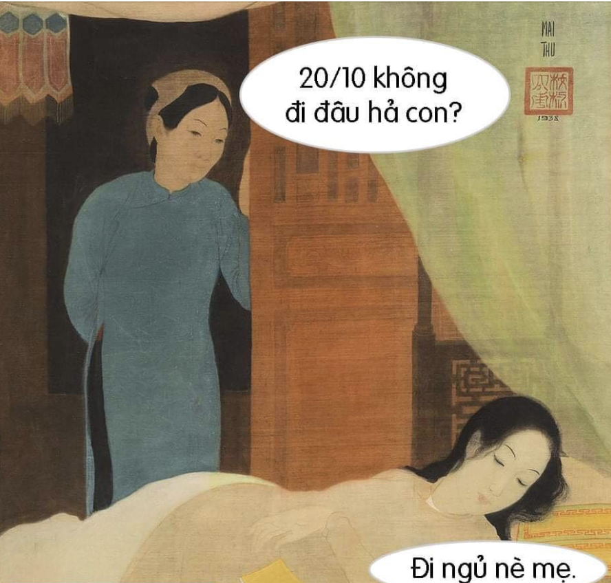 Thời điểm cuối năm 2019, bức vẽ 2 thiếu nữ mặc áo dài đang ngồi thưởng thức trà chiều cùng những câu nói 'cà khịa' nhau bỗng gây náo loạn cộng đồng mạng Việt Nam. 'Người người, nhà nhà' đã thi nhau biến tấu bức ảnh với nội dung vô cùng sáng tạo và hài hước.