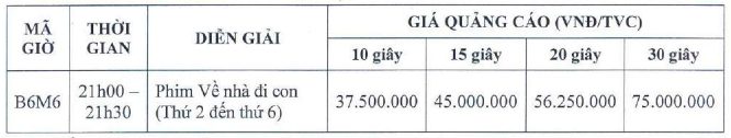 Báo giá quảng cáo trong “Về nhà đi con.”