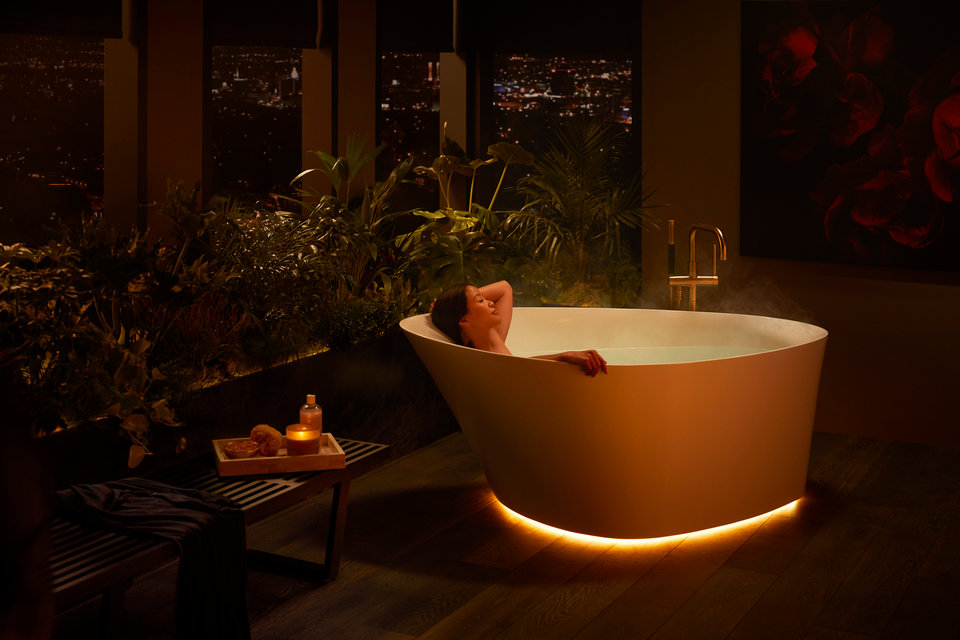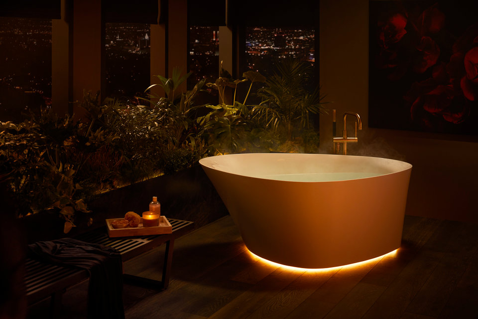 Bồn tắm với những đường cong tinh tế và được “chiếu sáng nhẹ nhàng.”
