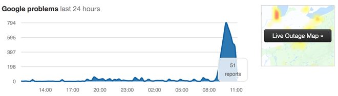 Biểu đồ từ DownDetector cho thấy dịch vụ của Google đang có vấn đề.