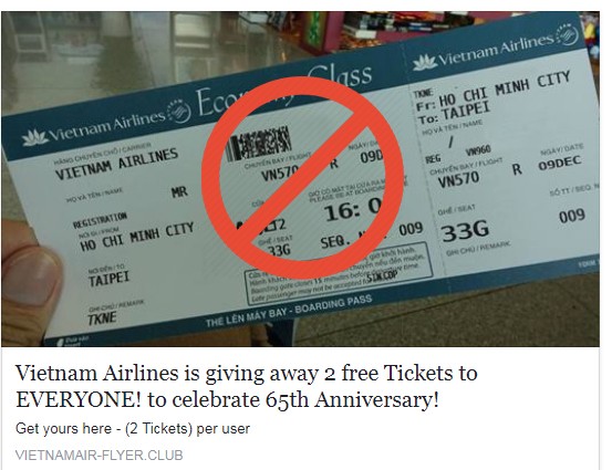 Dù vậy, mới đây, Vietnam Airlines đã phát đi khuyến cáo khách hàng cảnh giác trước chương trình giả mạo này. Theo đó, nếu tham gia, người dùng đứng trước nguy cơ bị rò rỉ thông tin cá nhân trong khi đó lại vô tình tiếp tay cho hành vi lừa đảo này bằng cách chia sẻ lên các mạng xã hội.