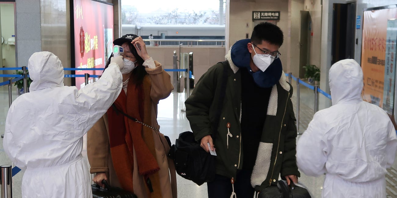 Đội ngũ y tế mặc đồ bảo hộ kiểm tra thân nhiệt của hành khách đến ga Hàm Ninh, Hồ Bắc, Trung Quốc vào thứ Sáu tuần trước. (Ảnh: Reuters)