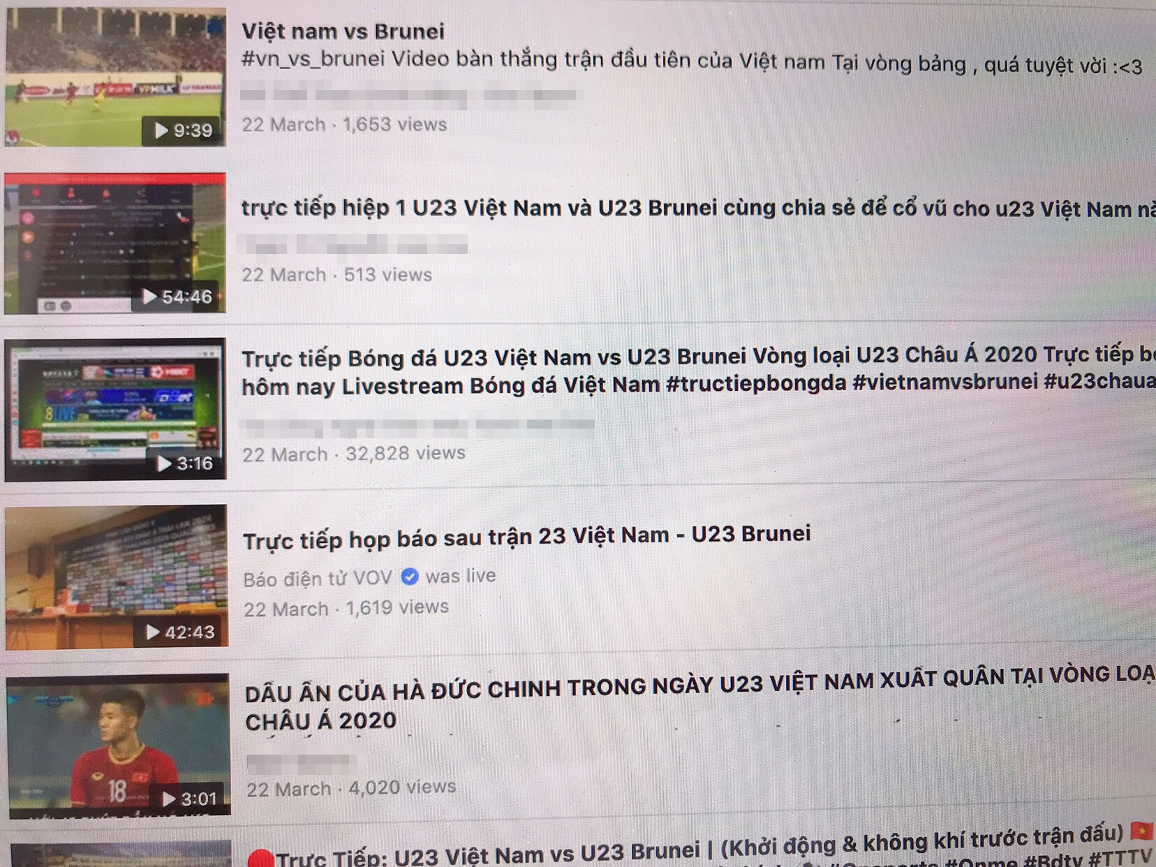 Cụ thể, bắt đầu từ trước khi trận U23 Việt Nam và U23 Brunei diễn ra, nhiều tài khoản Facebook đã mở phát trực tiếp để trận đấu để kêu gọi người xem, trên YouTube số lượng link vi phạm ít hơn. Sau khi trận đấu kết thúc nhiều tài khoản vẫn ngang nhiên đăng tải lại trận đấu trên tài khoản cá nhân của mình.