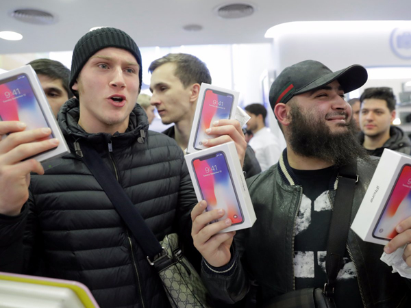 Những thanh niên này là những người đầu tiên mua iPhone X ở Moscow, Nga.