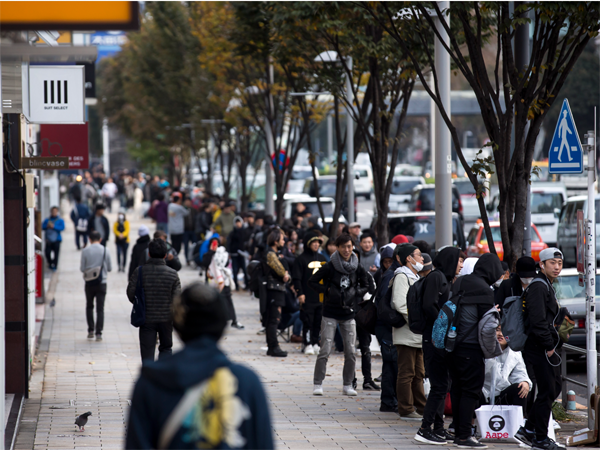 Tại Apple Store từ Singapore cho tới San Francisco, người hâm mộ Apple đã xếp những hàng dài với hy vọng được là một trong những người đầu tiên được trên tay iPhone X, điều dường như đã không xảy ra với iPhone 8 và 8 Plus bán ra trước đó.