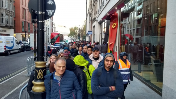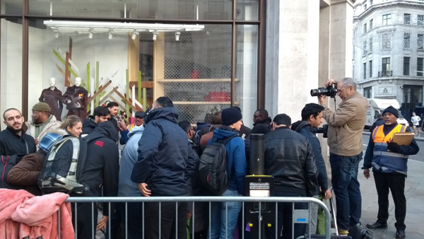 Người xếp hàng đầu tiên ở London, Anh, cho biết anh đã có mặt ở đây từ hôm thứ Ba. Thực tế anh đã tới đây từ Chủ nhật tuần trước thế nhưng lúc đó vẫn chưa có ai xếp hàng cả và Adam quyết định sẽ trở lại sau.