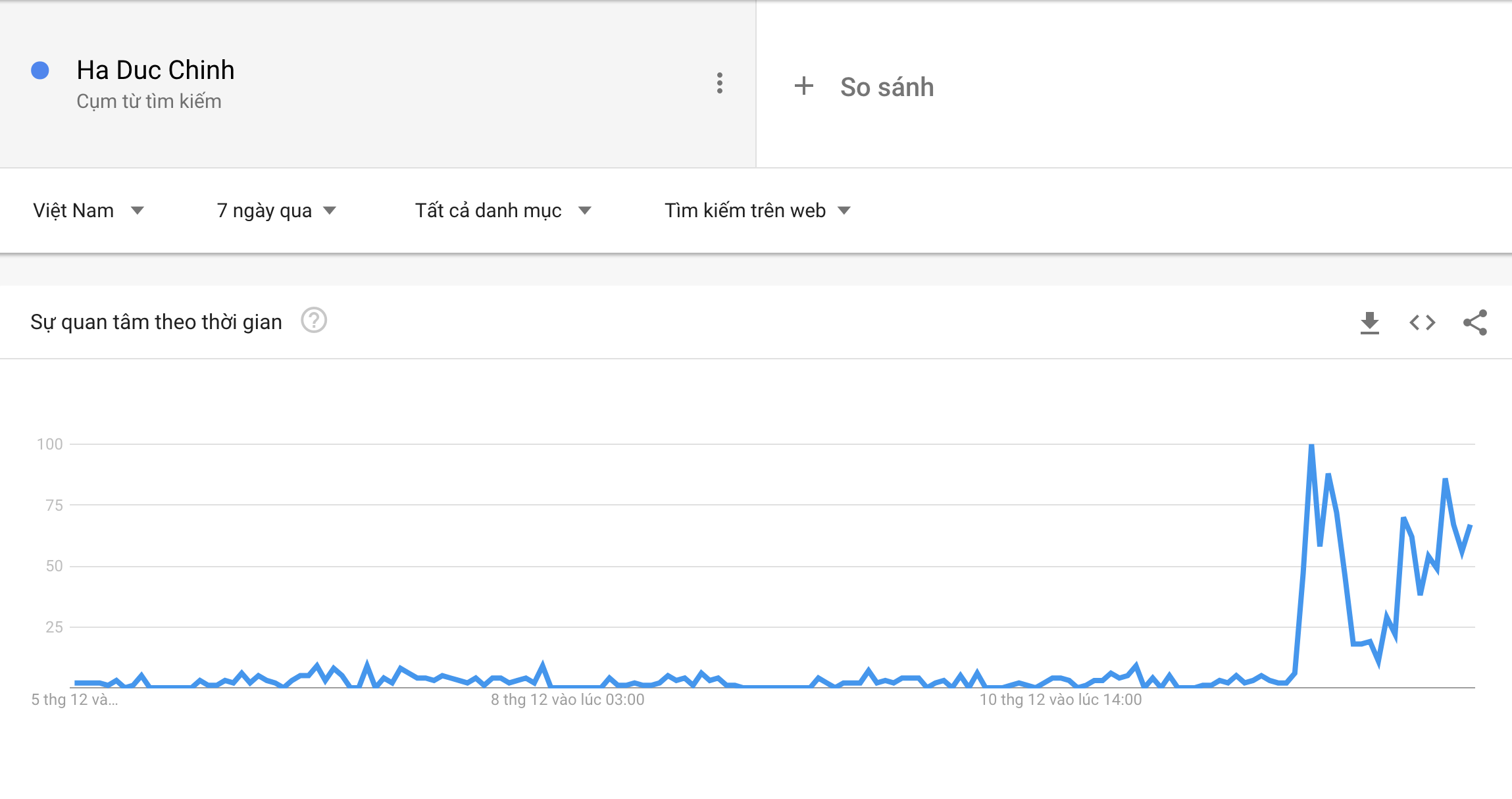 Cụ thể, theo kết quả thống kê từ Google Trends, từ khoá Hà Đức Chinh đã chễm chệ ở vị trí thứ 7 trong top từ khoá được tìm kiếm nhiều nhất trên Google Việt Nam từ khi kết thúc trận đấu cho đến nay.