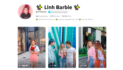 Linh Barbie có tên thật là Nguyễn Thị Diệu Linh. Linh Barbie sở hữu gương mặt xinh đẹp cùng nụ cười tươi rói, cuốn hút, gây ấn tượng mạnh mẽ trong cộng đồng mạng cùng những video sôi động trên TikTok. Tài khoản của Linh Barbie đã thu hút hơn 6,7 triệu lượt theo dõi, nằm trong số những tài khoản TikTok có lượt theo dõi đông đảo nhất tại Việt Nam.