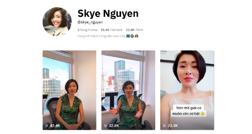 Không chỉ được xem là một công dân toàn cầu và đã từng đặt chân đến 30 quốc gia, Skye Nguyen cũng là một gương mặt rất được yêu thích trên TikTok với các nội dung xoay quanh câu chuyện du học và làm việc ở nước ngoài.