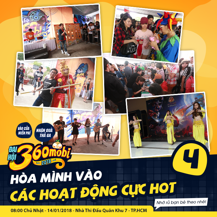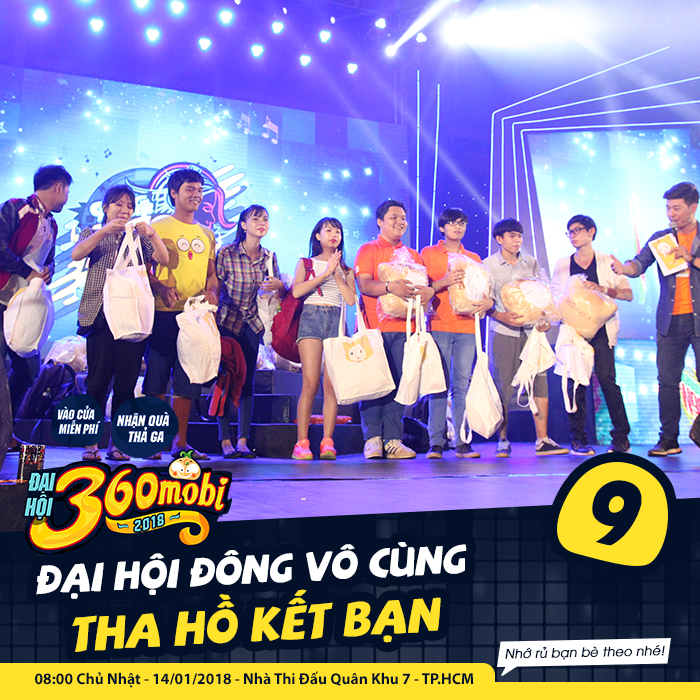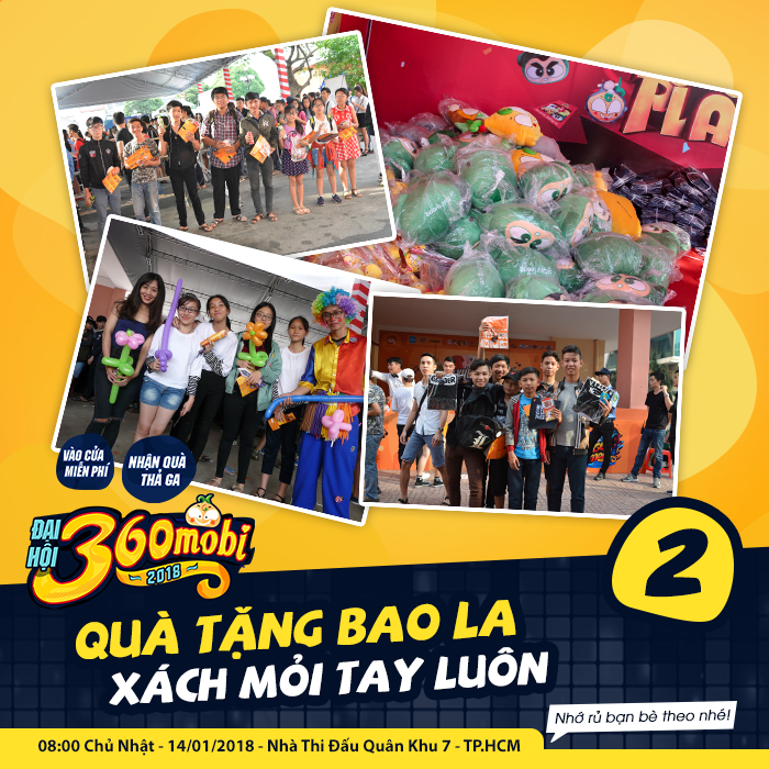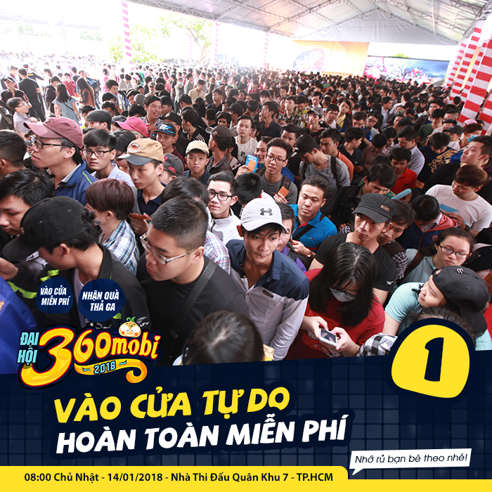 Tổ chức chuyên nghiệp với quy mô siêu khủng tại Nhà thi đấu Quân khu 7 (một trong những địa điểm sinh hoạt văn hóa xã hội nổi tiếng tại Tp.HCM) - thế nhưng Đại hội 360mobi 2018 cũng sẽ giữ truyền thống “miễn phí” vé vào cửa. Đại hội sẽ luôn mở rộng cửa với bất cứ ai, chỉ cần bạn là người muốn tham gia vào ngày hội đông vui nhất của game thủ Việt. Và đừng quên mời thêm bạn bè cho “xôm tụ” nhé!