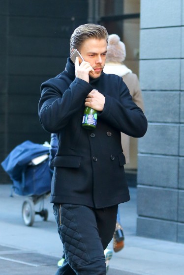 Vũ công Derek Hough nghe điện thoại bằng một chiếc iPhone trên đường phố New York.