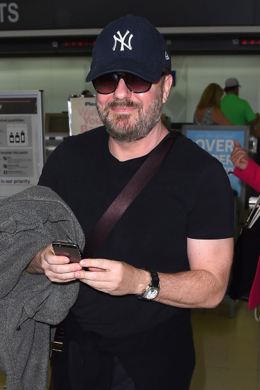 Diễn viên Ricky Gervais cầm iPhone trên tay khi vừa đáp xuống sân bay LAX.