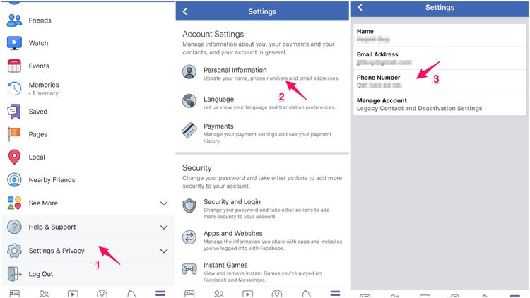 Đầu tiên, bạn hãy truy cập ứng dụng Facebook trên điện thoại. Sau ấn vào tuỳ chon Settings & Privacy. Tiếp đến, chọn Settings > Personal Information, tại đây bạn sẽ thấy tên, địa chỉ email và số điện thoại mà mình đã cung cấp cho ứng dụng.