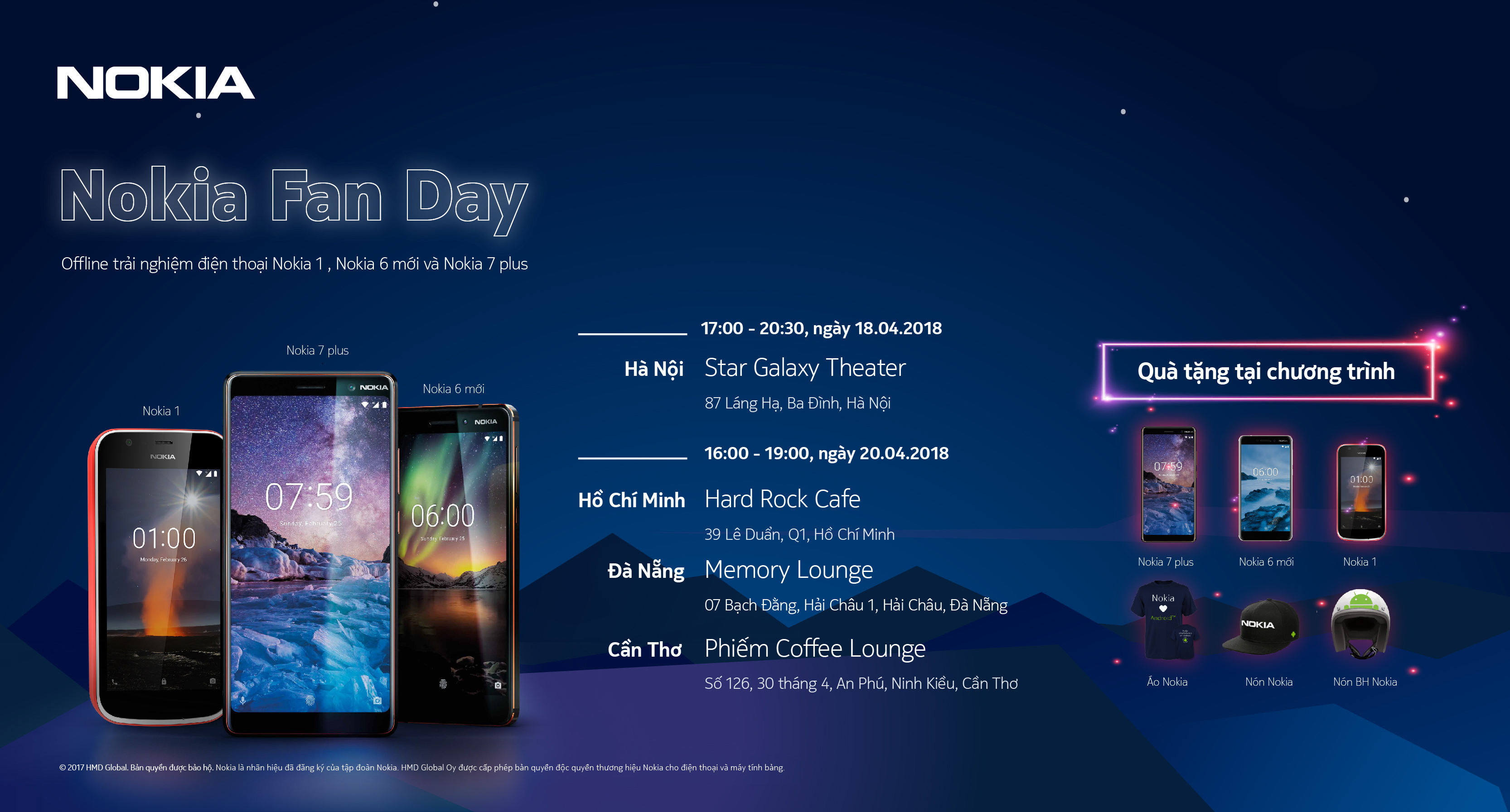 Nokia fan có thể đăng ký tham dự buổi offline trải nghiệm Nokia 1 / Nokia 6 mới / Nokia 7 plus tại đây.