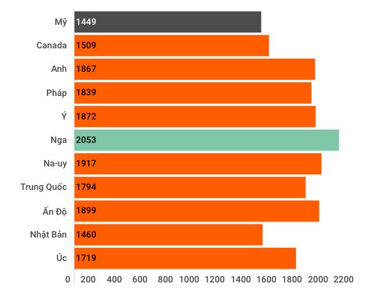 Đối với chiếc iPhone 11 Pro Max bản có dung lượng bộ nhớ trong 512 GB, Mỹ là nơi bạn có thể mua được máy với giá tốt nhất 1.449 USD. Cùng thời điểm, mức giá quy đổi cho chiếc máy này tại Nga lên tới 2.053 USD. Mức giá chiếc điện thoại này tại Nhật Bản cũng khá tốt khi bạn chỉ cần bỏ ra 1.460 USD là đã có thể mua được nó, cao hơn một chút so với giá tại Mỹ.