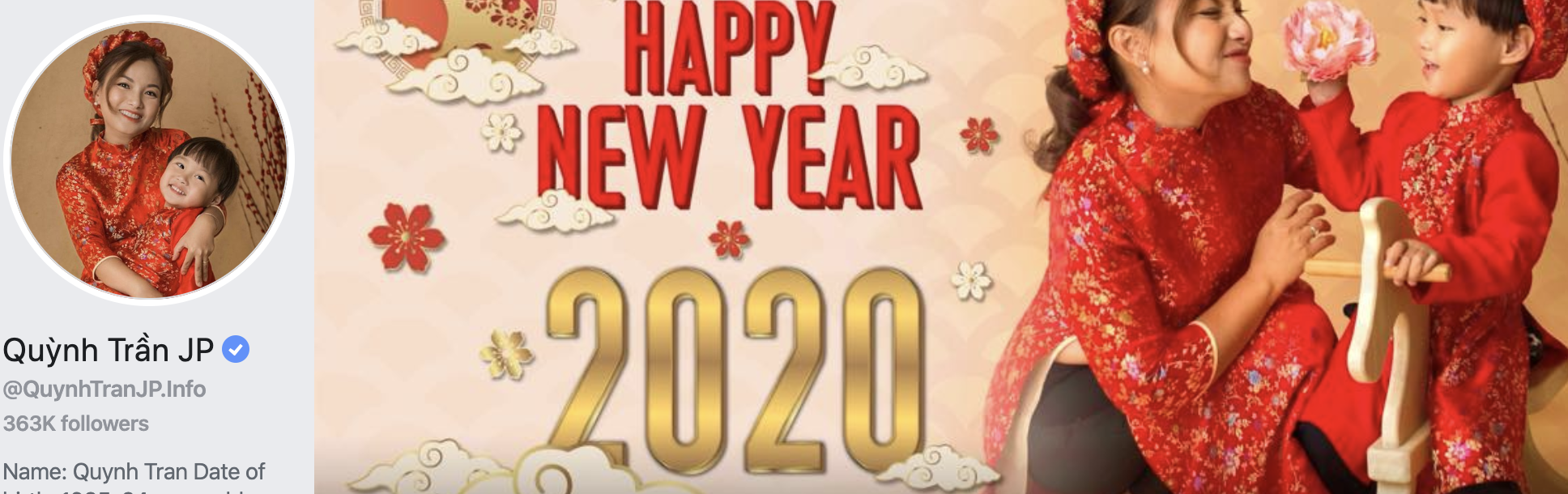 Trang cá nhân của mẹ con Quỳnh Trần JP và bé Sa đã được Facebook cấp dấu tick xác thực màu xanh. (Ảnh chụp màn hình)