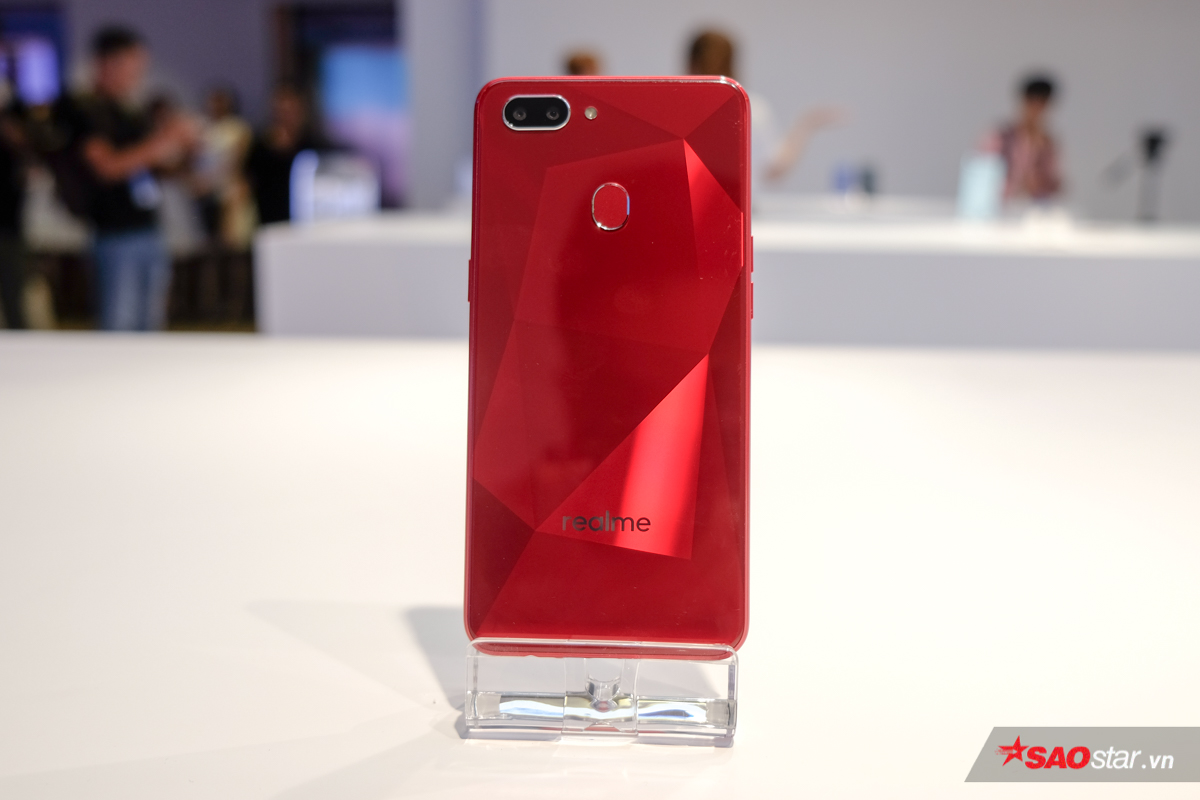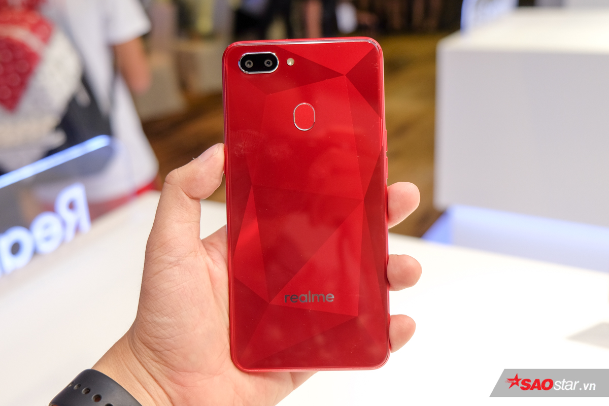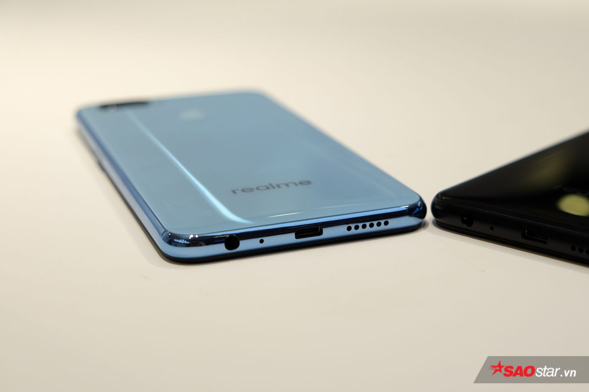 Mặt sau của thiết bị cũng được cấu thành từ nhựa giả kính nhưng lại không có hoạ tiết lát cắt kim cương như Realme 2.