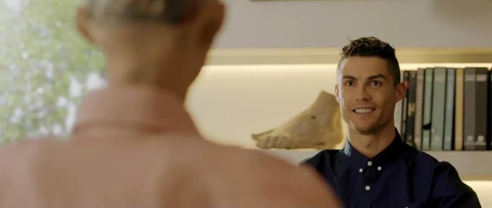 “Anh là cầu thủ bóng đá có nhiều người hâm mộ nhất trên thế giới. Trên Instgram anh có 122 triệu người theo dõi, anh từng thắng 5 giải Quả bóng vàng Châu Âu, hai giải thưởng của FIFA và đã ghi được 636 bàn thắng,” Sophia tiếp tục khoe những gì cô biết về Ronaldo trong lần đầu hai người gặp mặt.