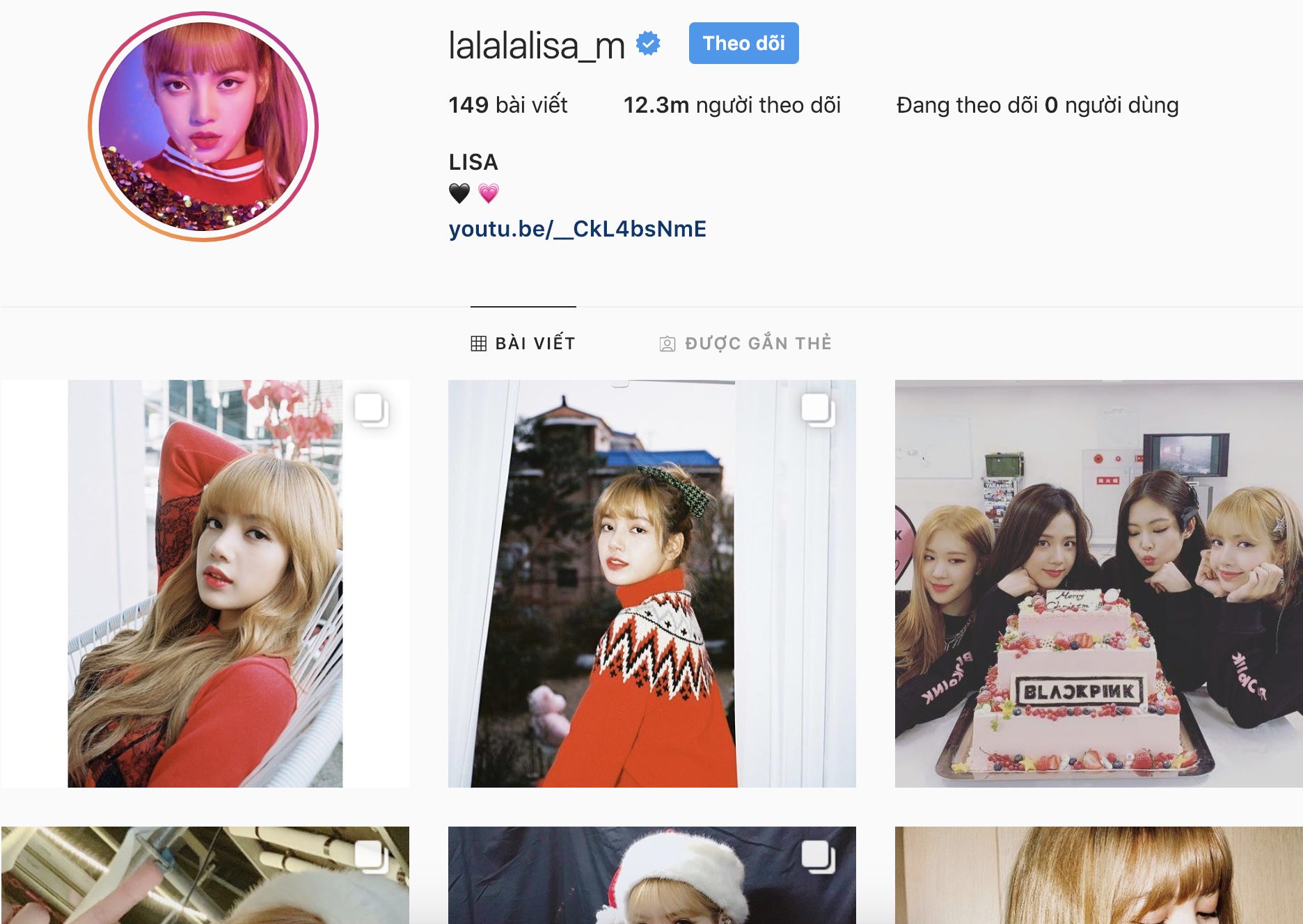 Gần đây, một bức ảnh của “em út BlackPink” Lisa cũng đã cán mốc hơn 3,5 triệu like trên Instagram, đưa bức ảnh chính thức trở thành tấm ảnh sở hữu nhiều lượt tim nhất của Kbiz trên Instagram. Thành tích trước đó là bức ảnh trong bộ trang phục cưới của cặp đôi nổi tiếng ở Hàn Quốc Song Hye Kyo - Song Joong Ki với 3,4 triệu lượt thích.