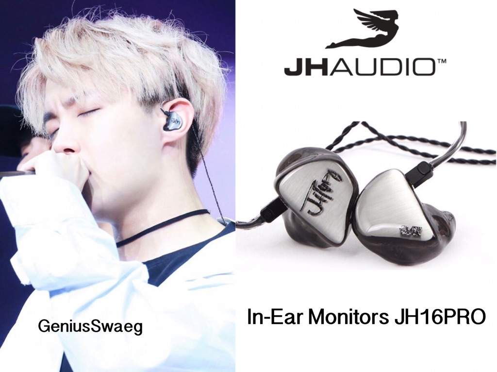 Suga trong khi đó lại lựa chọn thương hiệu JH Audio cùng dòng tai nghe JH16Pro. Dòng tai nghe này đã ra mắt từ năm 2010 và khi đó có giá trên dưới 1.150 USD (chưa kể chi phí thiết kế). Nếu để ý bạn có thể thấy biểu tượng in trên tai nghe của Suga là hai chữ S và G lồng vào nhau.