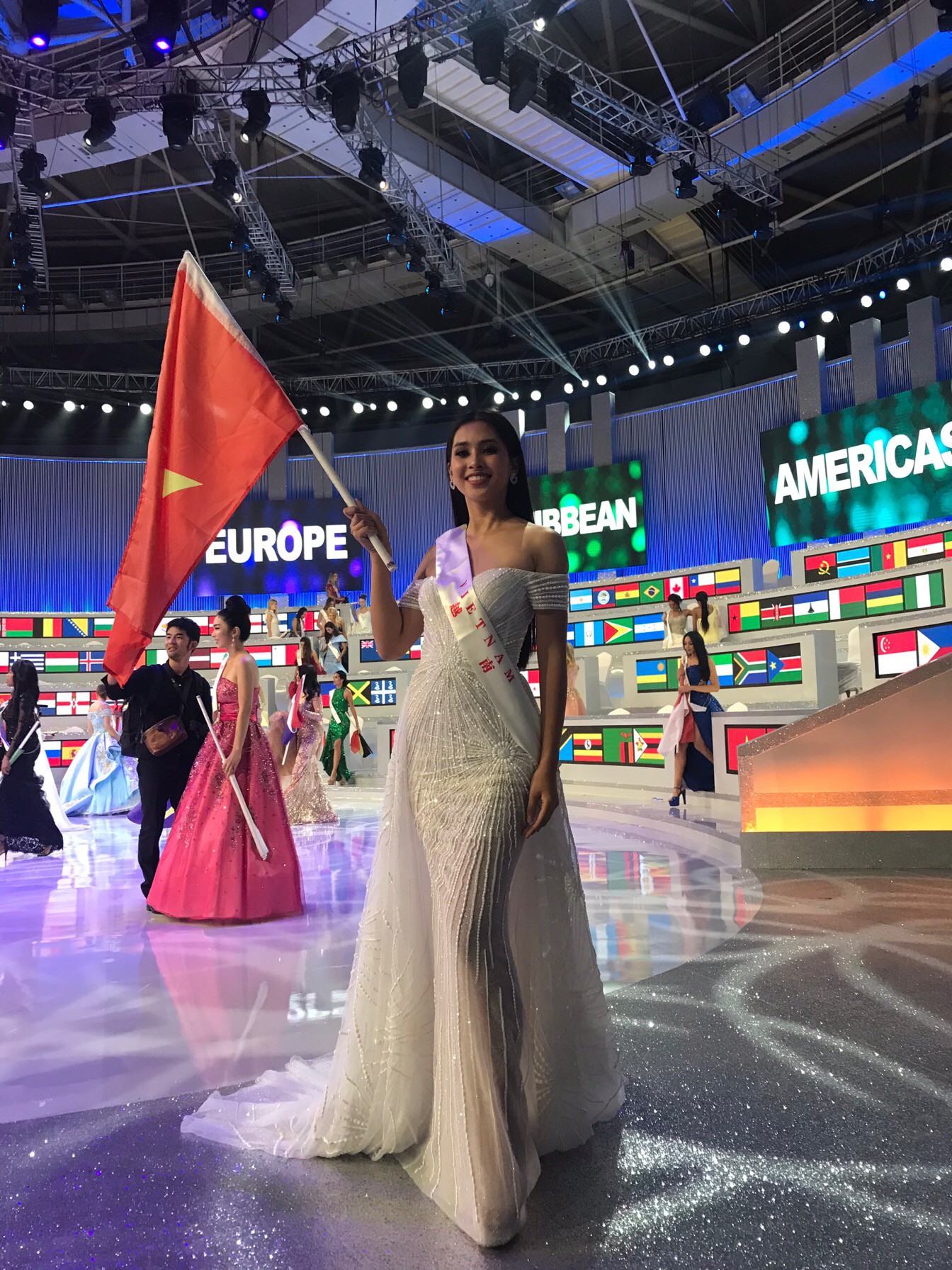 Hình ảnh Trần Tiểu Vy trên sân khấu đêm chung kết Miss World 2018.