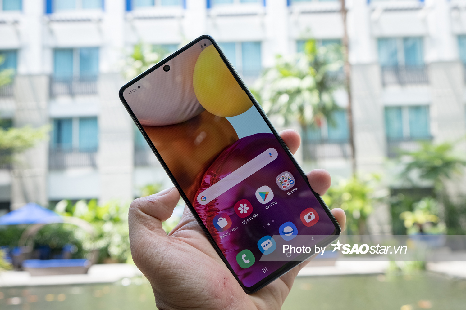 Cận cảnh viền màn hình siêu mỏng trên chiếc Samsung Galaxy A71.