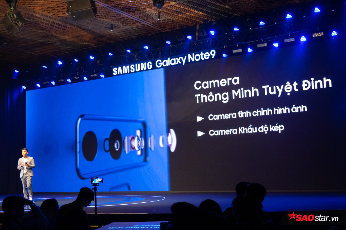 Tương tự Note8, thành viên mới nhất của dòng Note cũng được trang bị cụm camera kép ở mặt lưng với 2 ống kính có độ phân giải 12MP, camera chính hỗ trợ góc chụp rộng. Nâng cấp của máy so với thế hệ tiền nhiệm là khả năng thay đổi khẩu độ của ống kính từ f/2.4 lên f/1.5 , một tính năng đã xuất hiện trên Galaxy S9+.