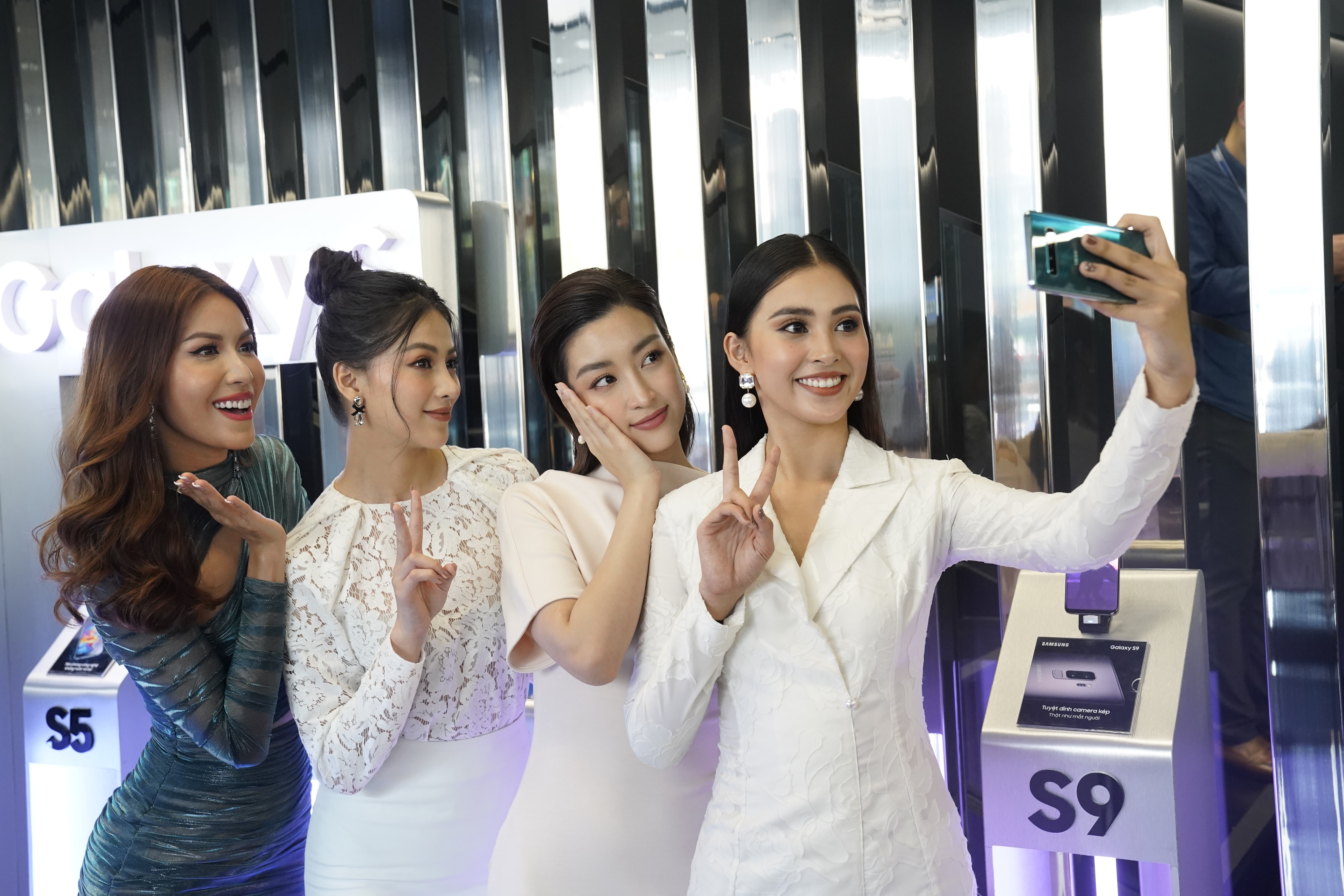 Hoa hậu Đỗ Mỹ Linh, Minh Tú, Phương Khánh và Tiểu Vy cùng selfie với siêu phẩm Galaxy S10+.