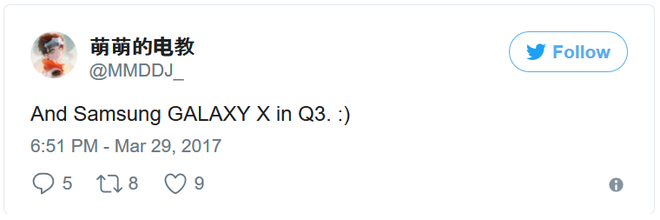 Dòng tweet của mmddj_china cho biết thời điểm ra mắt của Galaxy X.