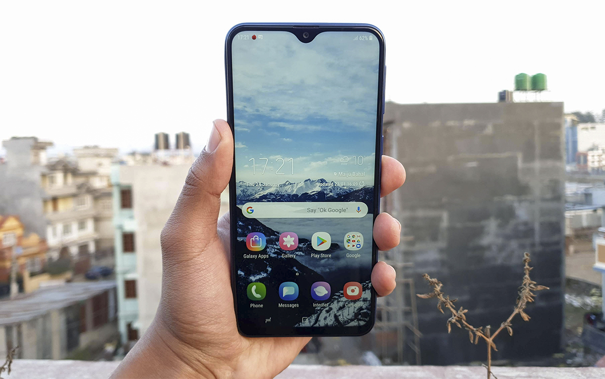Kế thừa “người anh” Galaxy M20, Galaxy M10 được trang bị màn hình Infinity-V với tỉ lệ màn hiển thị lên đến hơn 90% mặt trước máy. Màn hình tràn viền thời thượng 6.2 inch với tỉ lệ 19:9 chuẩn điện ảnh mang đến trải nghiệm hình ảnh tốt hơn, giúp người dùng tận hưởng những giây phút giải trí được trọn vẹn như chơi game, xem phim, mua sắm online hay tương tác với các ứng dụng thú vị mà không gặp bất kỳ trở ngại hay giới hạn hình ảnh nào.