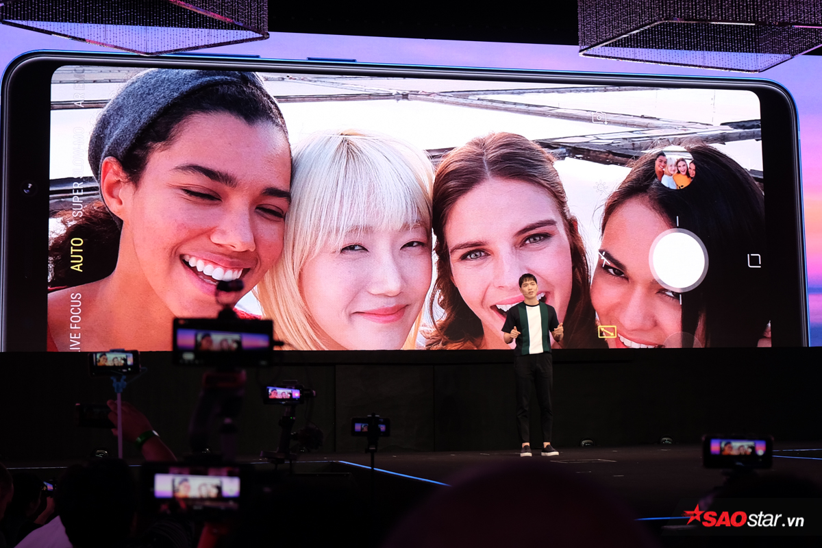 Thừa hưởng tính năng của các dòng smartphone cao cấp, Galaxy A9 cũng có tính năng nhận diện cảnh chụp thông minh sử dụng AI để tự động điều chỉnh thiết lập chụp ảnh theo bối cảnh chụp, tương tự như siêu phẩm Galaxy Note 9. Camera selfie của Galaxy A9 (2018) cũng có độ phân giải 24MP, khẩu độ f/2.0 hỗ trợ nhiều chế độ làm đẹp cho người dùng.